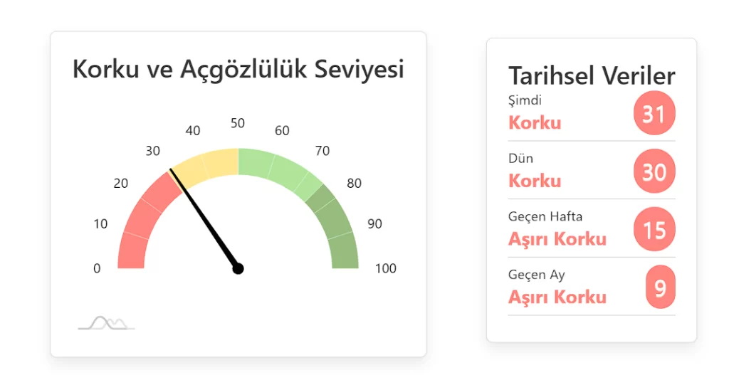 Korku ve Açgözlülük Endeksi bir anda ibreyi Açgözlülük seviyesine getirmese de aşırı korku sonunda yerini korku durumuna bıraktı. 100 üzerinden 30 puana kadar yükselen endeks, daha sonra 31 seviyesine kadar çıktı ve yükseliş devam ediyor.