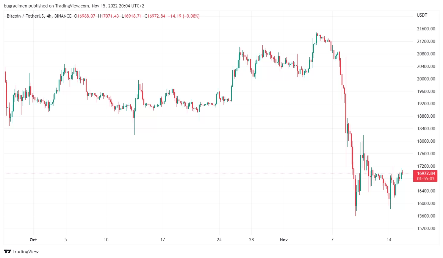 Geçtiğimiz hafta dev kripto borsası FTX’in iflasıyla birlikte Bitcoin, son zamanların en büyük satış baskısıyla karşı karşıya kaldı. Kripto paraların atası, geçtiğimiz hafta sonuna doğru son 2 yılın en düşük seviyesi olan 15.600$’a kadar geriledi.