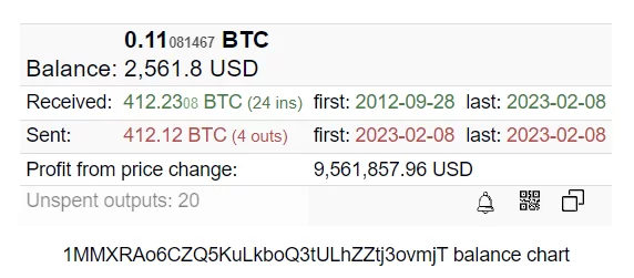 2012 yılında ilk defa BTC satın alan cüzdan 11 yıldır uyku halindeydi. Cüzdan içerisinde bulunan 412 BTC bugün hareket ettirildi ve tamamı satıldı. Bu BTC’lerin bugünkü değeri yaklaşık 9,6 milyon dolar.