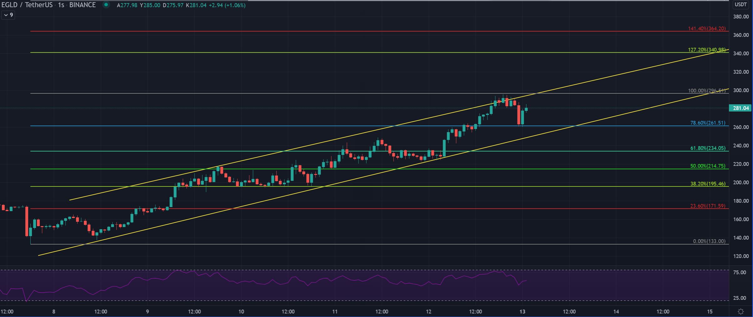 Grafiğe fibonacci uygulandığında ise EGLD‘nin sıradaki en önemli hedefinin ise 340 dolar seviyeleri olduğu görülüyor. Özellikle fiyatın 247 dolar üzerinde tutunması ve yükseliş trendinin bozulmaması, yeni zirvelerin gelmesi ve balinaların alış yönlü karar vermesi için oldukça önemli.