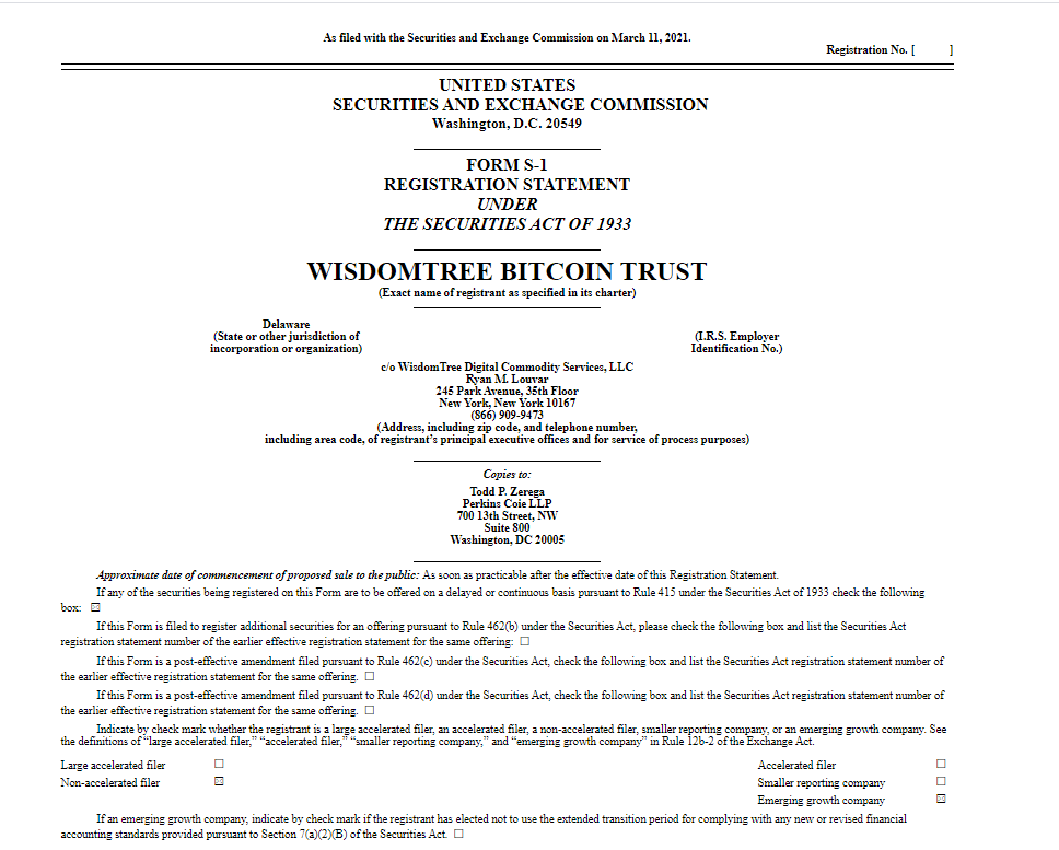 WisdomTree, Bitcoin borsa yatırım fonu (ETF) çıkarabilmek için bugün ABD Menkul Kıymetler ve Borsa Komisyonu’na (SEC) başvuru yaptı.