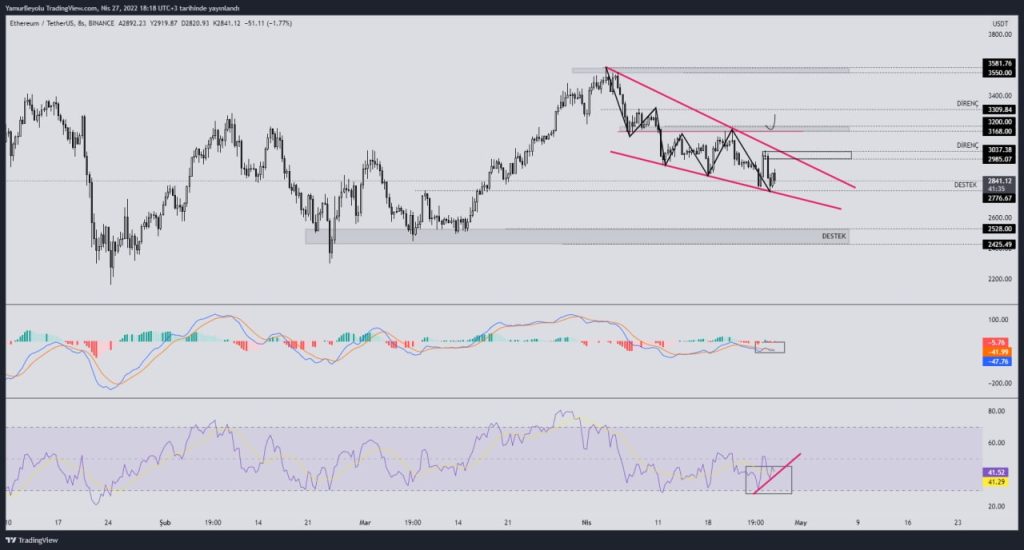 Fakat ETH 3.000 dolar seviyesinin üzerinde kalıcı olmayı başaramayıp tekrardan 2800 destek bölgesine geri çekilme oluşturdu.