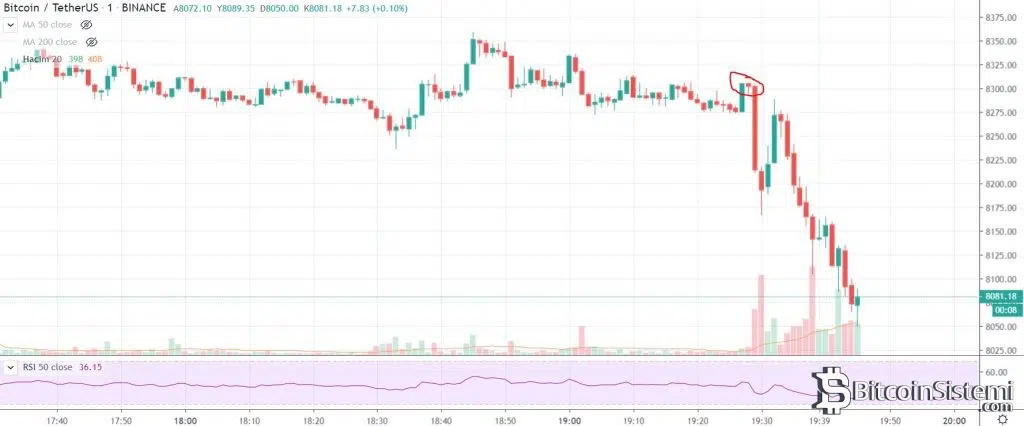 Bitcoin Başkan Trump’ın konuşmasından sonra yaklaşık 250 dolar düşüş yaşayarak adeta bu kaos sayesinde yükseliş yaşamış olduğunu kanıtlar nitelikte davranış sergiledi. Olumlu bir konuşma olmasından sonra düşüş yaşayan BTC an itibarı ile 8000 dolar desteğinde tutunmaya çalışıyor.