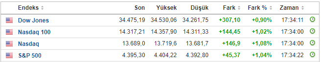 FED kararı sonrası yeni güne pozitif bir başlangıç yapan ABD borsaları dünkü kayıplardan sonra %1’in üzerinde primle güne başladı.