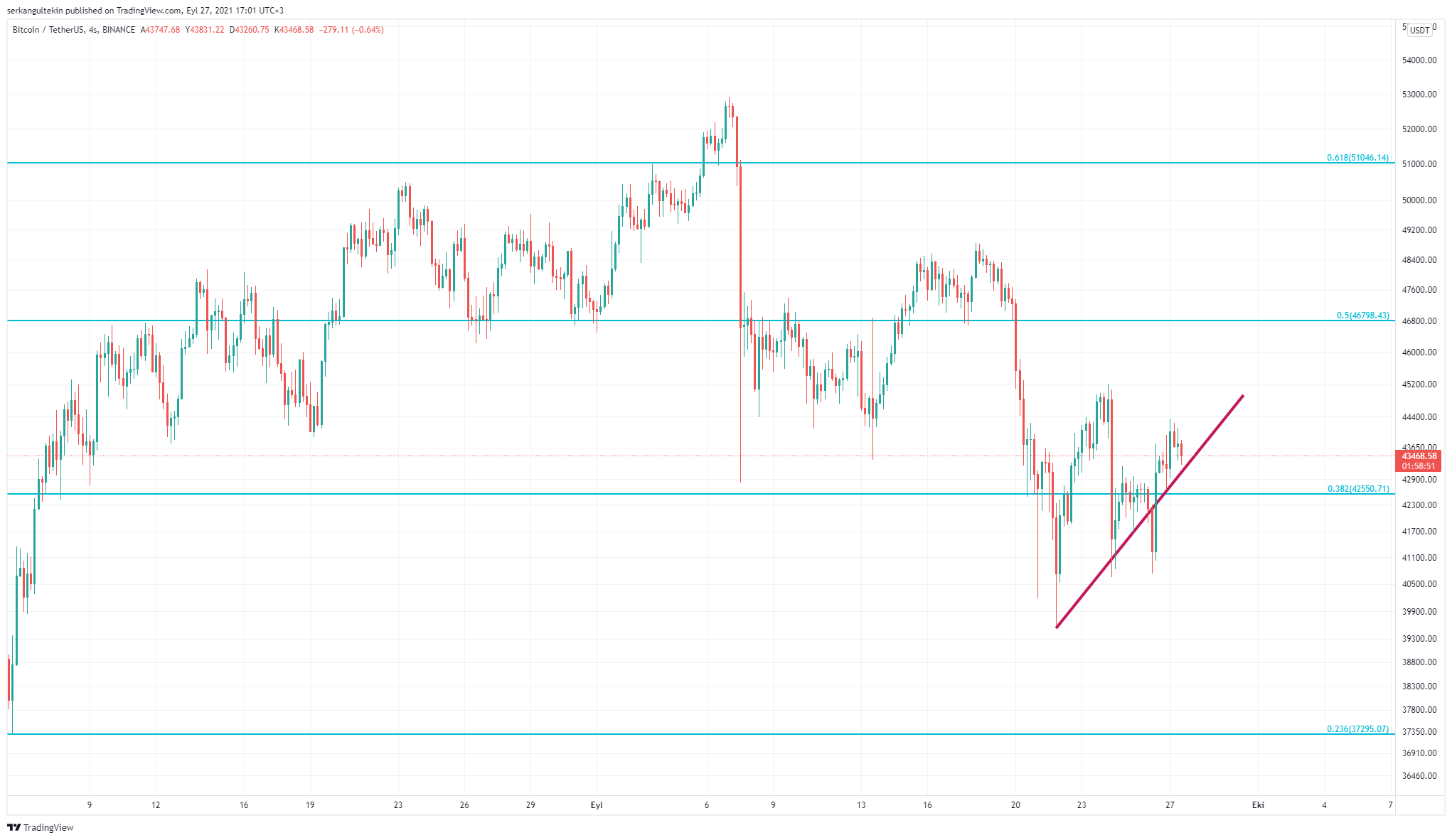 İlerleyen saatlerde Nasdaq ve S&P 500 hisselerinde bir toparlanma görürsek Bitcoin de kendisini yeniden 44.000$’ın üzerine atabilir. Geri çekilmelerde 42500$ ana desteğimiz olmaya devam ediyor.