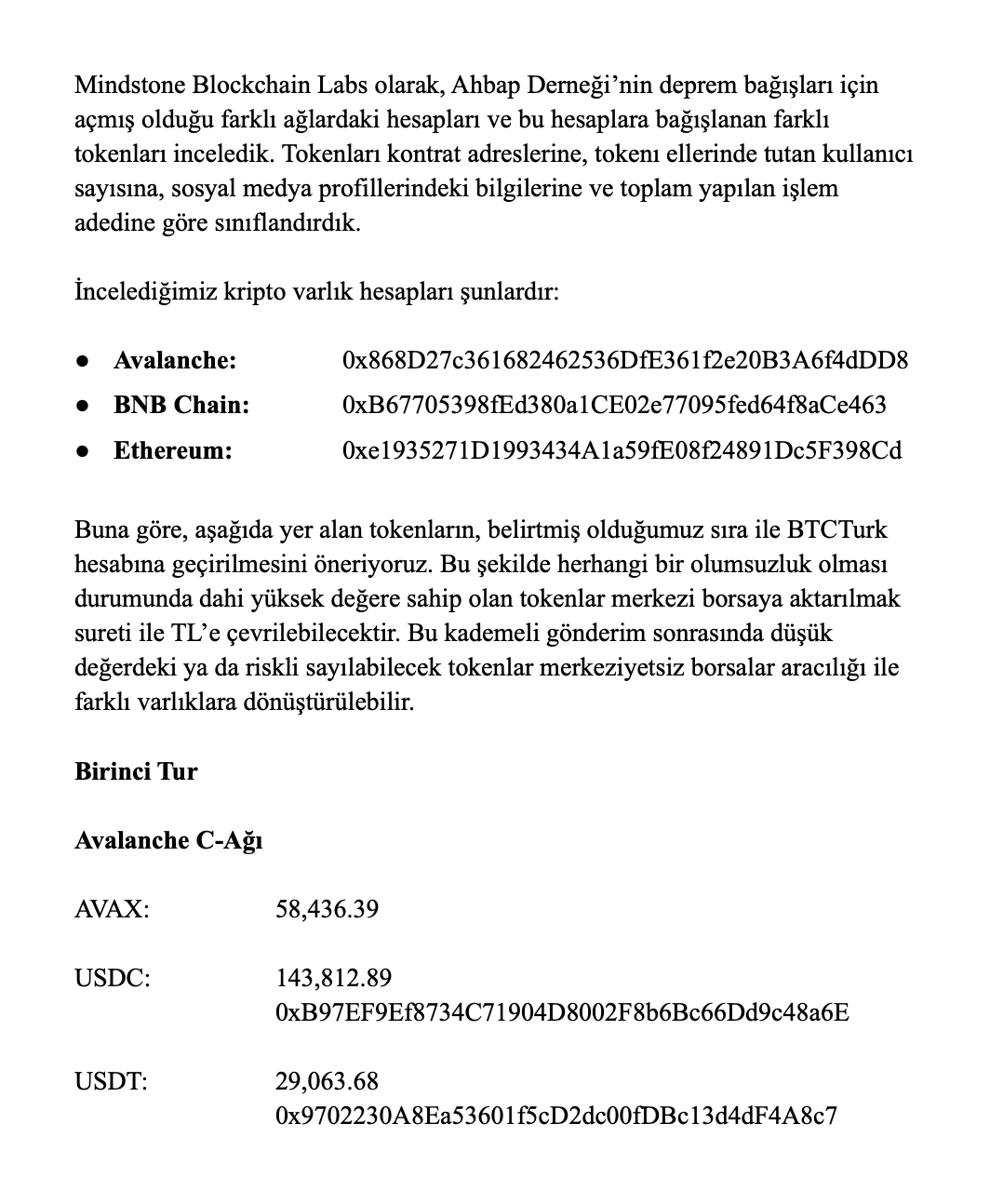 “Birazdan Ahbap’ın multisigli bağış cüzdanında biriken kripto para bağışlarını derneğin BTC Türk üzerindeki resmi bağış hesabına aktarmaya başlayacağız.