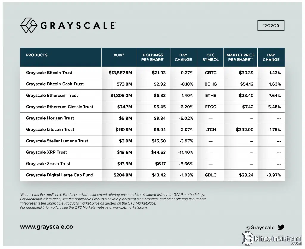 Grayscale, bu hafta internet sitesi üzerinden yaptığı duyuruda Bitcoin, Bitcoin Cash, Ethereum, Ethereum Classic, Litecoin ve Digital Large Cap Fund Trust ürünlerine bir süreliğine yeni yatırım yapmayacağını ve yatırımlarını askıya aldığını duyurmuştu.