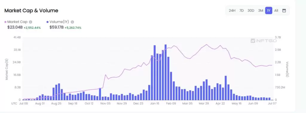 NFT‘lerin yıl bazında satış hacim dağılımlarına baktığımızda Şubat 2022 tarihinden bu yana NFT genelinde de bir düşüş olduğu görülüyor. Bununla beraber geçen hafta zincirler arası Ronin Bridge’i yeniden açtıktan sonrada NFT fiyatlarının düşmesi son gelişen haberler arasında yer aldı.