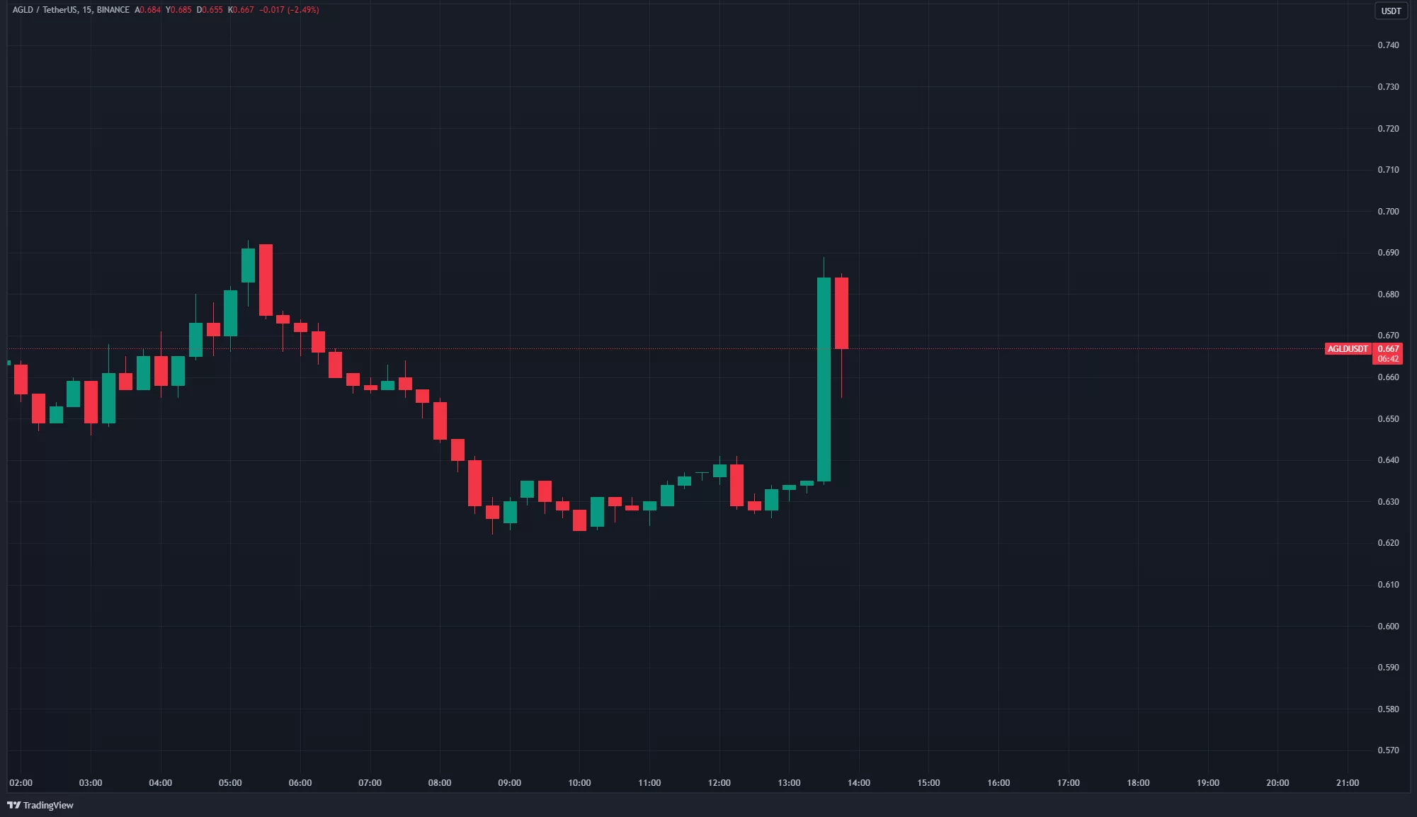 Binance’in duyurusunun ardından AGLD fiyatı %10’luk bir yükseliş yaşadı ve bir miktar geri çekildi.