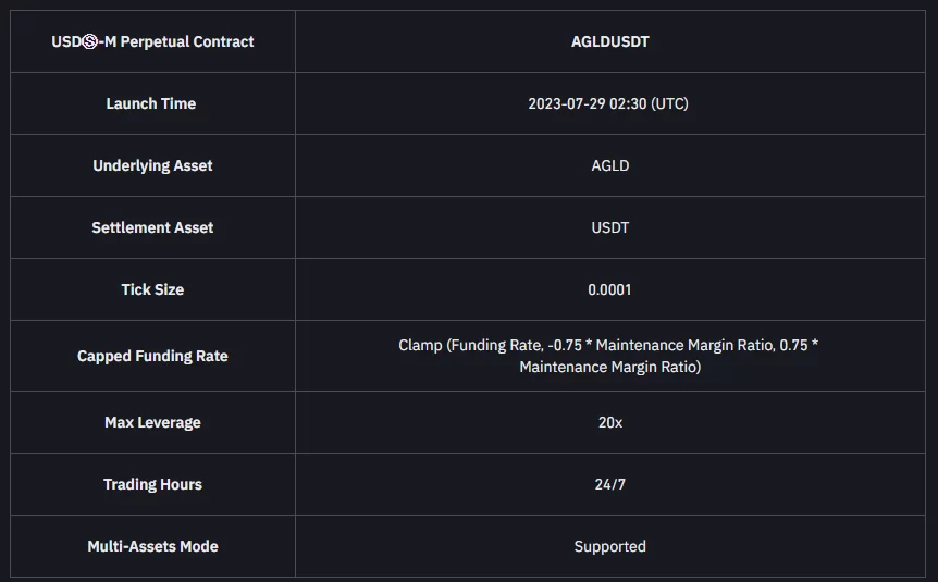 Binance Futures AGLD vadeli işlem sözleşmelerini başlatacağını duyurdu.