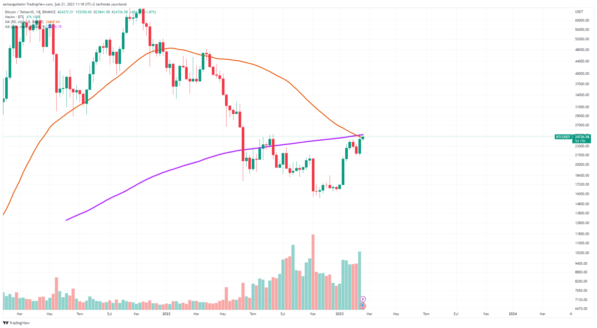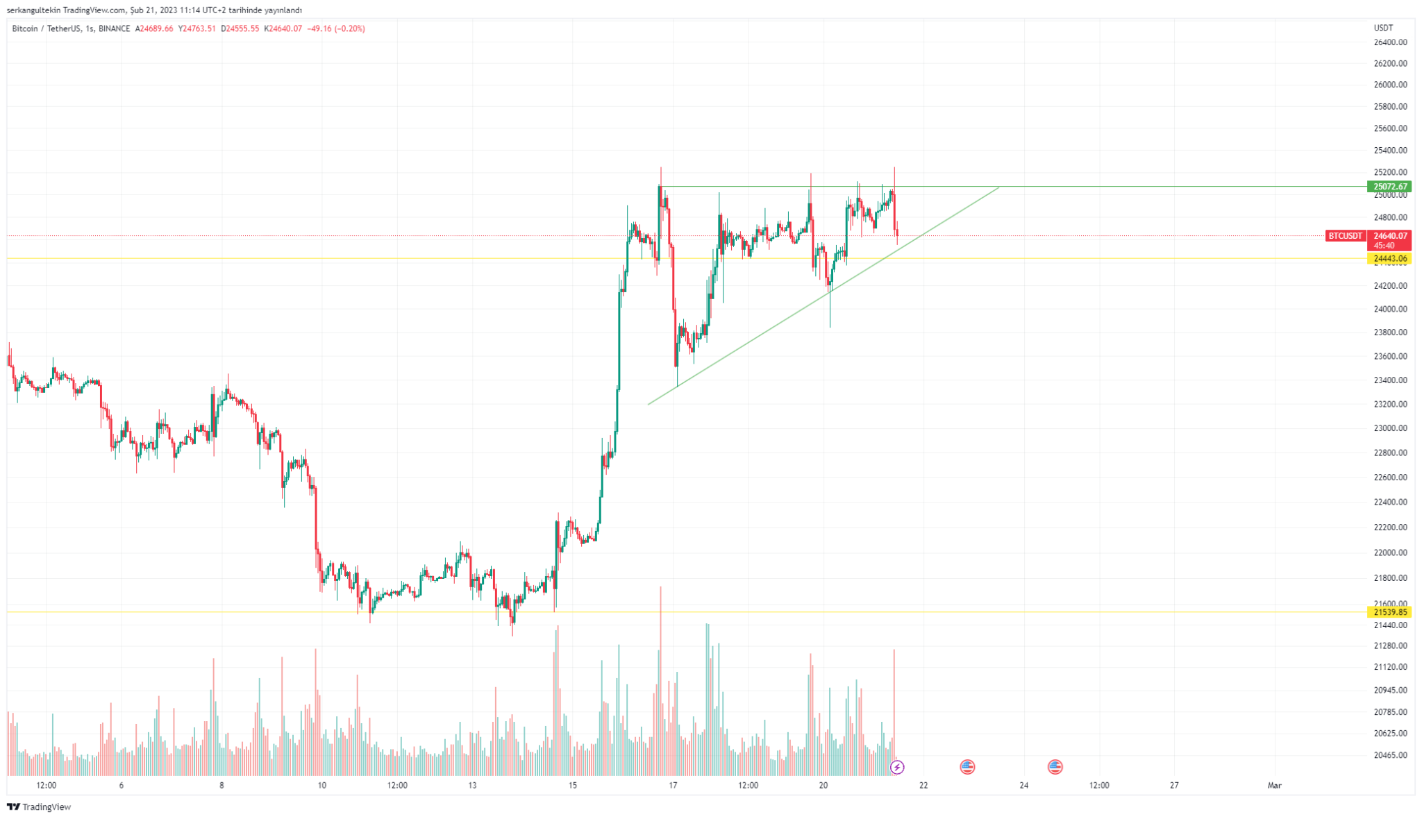 Binance CEO’sunun bu paylaşımıyla birlikte Bitcoin 25250$’a yükselse de, burada kalıcı olamadı ve hızlı bir şekilde 24635$’a kadar geri çekildi.