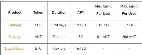 Binance Earb her çarşamba bazı özel teklifler sunuyor. Bu haftanın özel tekliflerinde Solana, ANT ve ETC yer alıyor.