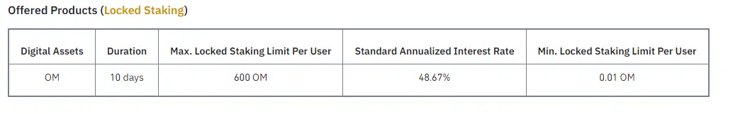 Binance Staking, OM için %48.67’ye varan oranlarla kilitli stake hizmeti başlatıyor.