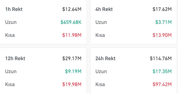 Bunun 97 milyon dolarının short pozisyonlardan, 17 milyon dolarının ise long pozisyonlardan oluştuğu görüldü.