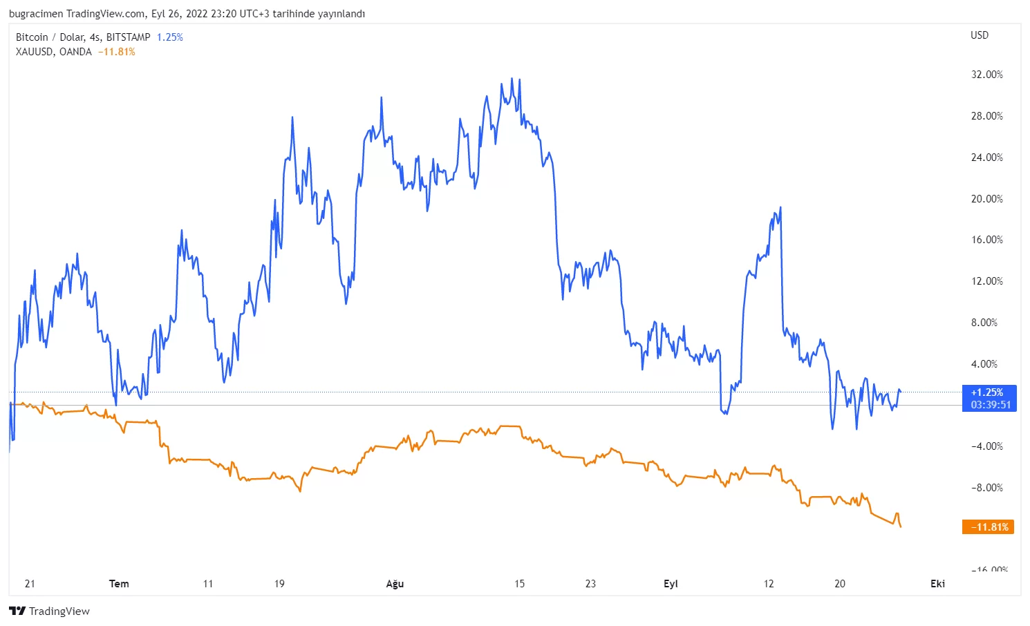 Bitcoin, 21 Haziran tarihinde gördüğü dipten itibaren günümüze kadar %1,25 değer kazanırken, ülkemizde oldukça popüler olan altın ise dolar bazında %11,81 değer kaybına uğradı.