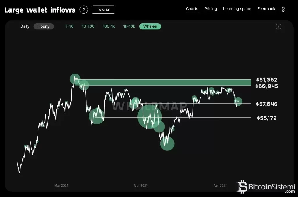 Bitcoin balinalarını takip eden Whalemap tarafından paylaşılan bilgilere göre balinalar özellikle 60.045 dolar ile 61.062 dolar seviyeleri arasında kümelenmiş gibi gözüküyor. Araştırmacılar tarafından yayınlanan gönderide özellikle 60.045 doların önemine değinirken bunun kırılması ile ciddi bir yükseliş yaşanabileceği görülüyor.