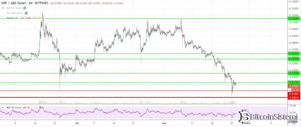 XRP’de saatlik grafiğe bakıldığı zaman şu aşamada dip noktanın 0,20 dolar olduğu görülüyor. Uzmanlar, XRP eğer bu seviyenin altına düşerse kayıpların ciddi oranda artabileceğini ifade ediyor. Direnç noktaları ise bu dönemde 0,221, 0,235 ve 0,25 dolar seviyeleri olarak karşımıza çıkıyor.