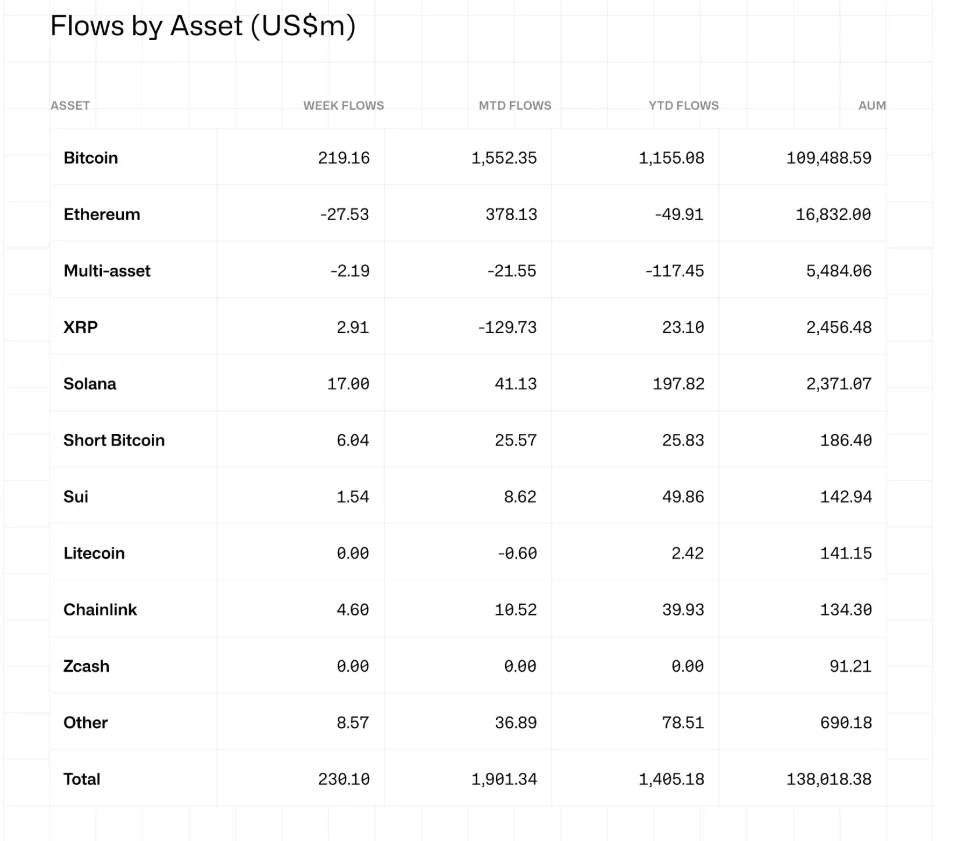 “Bitcoin, geçen hafta 219 milyon doları ile girişlerde başı çekti.