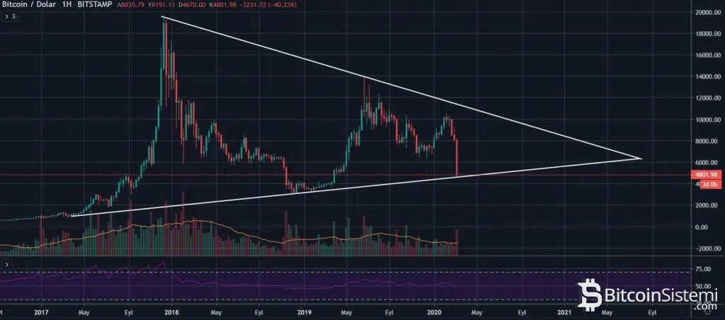 Tüm dünyada piyasaların ciddi şekilde gerilediği bu dönemde Bitcoin’de de tarihin en büyük düşüşlerinden biri görülüyor. Gece saatlerinde 5.000 doların altına gerileyen BTC fiyatı, 4.400 dolar seviyelerine kadar gerileyerek yatırımcısını adeta şok etti.