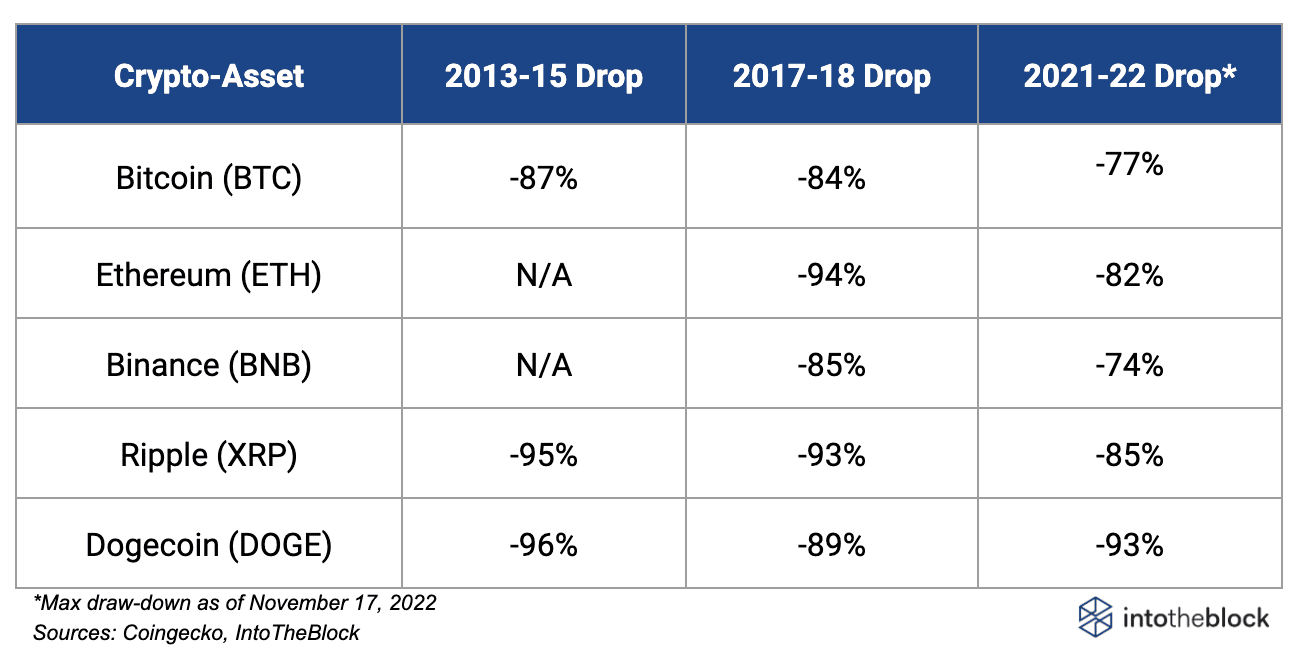 Araştırmacılar, ilk olarak geçmiş ayı piyasalarındaki düşüş ile günümüz kripto piyasasını karşılaştırdı.
