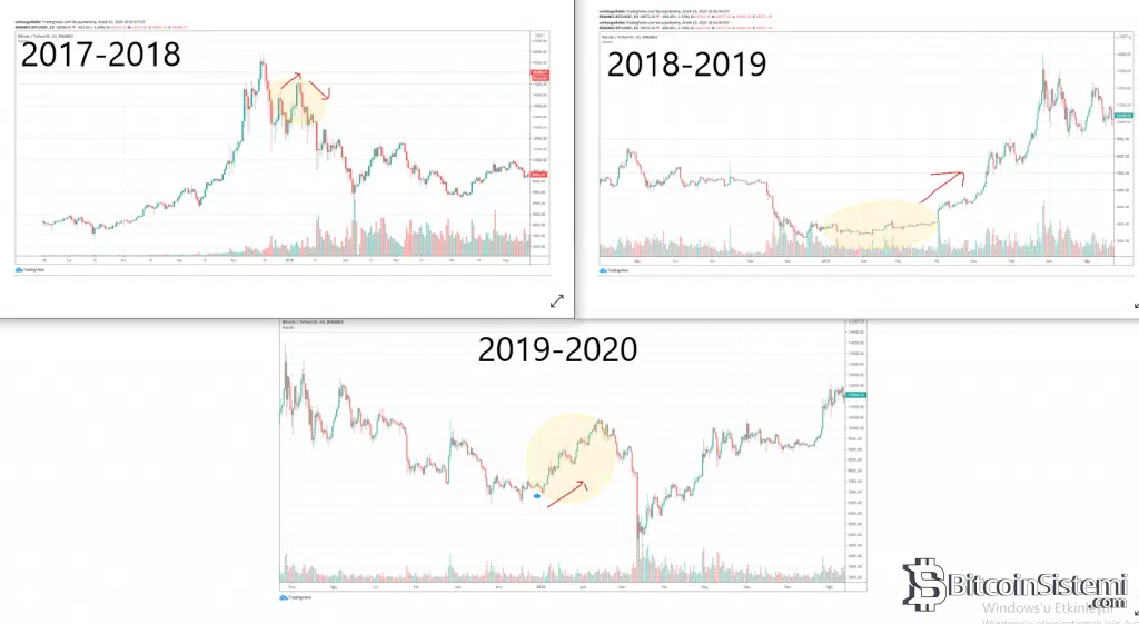 Görüleceği üzere yıl dönümlerinden sonra Bitcoin’deki genel olarak bir yükseliş hareketi gözlemlenmiş.
