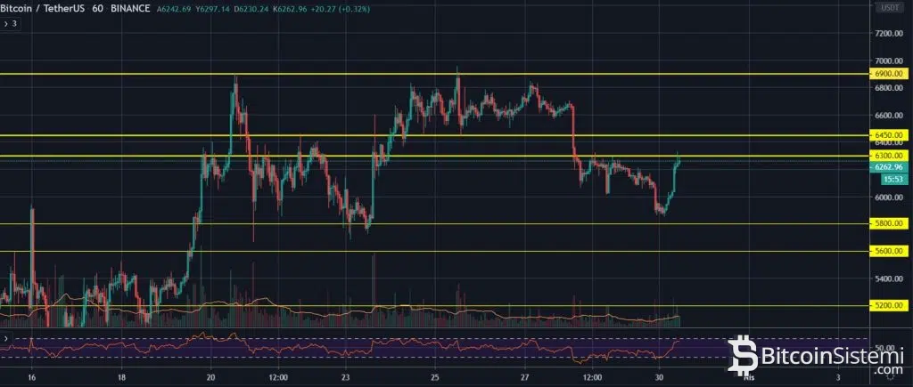 Bu hareketi ile haftaya yükselişle başlayan Bitcoin, 5800 dolar seviyelerinde tutunmuş oldu ve tekrar kendini 6250 dolar seviyelerine yükseltti. Ancak unutulmamalı ki bu yükseliş tehlikenin tamamen geçtiğinin habercisi değil.