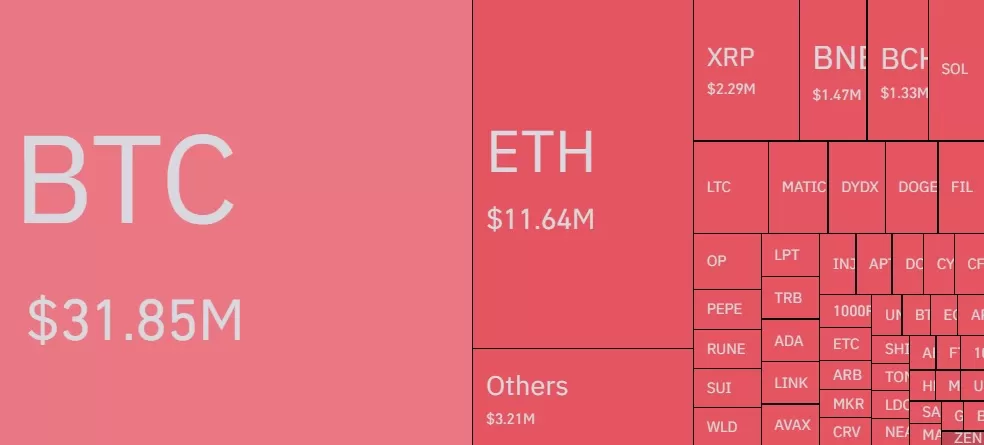 Son yükseliş ile birlikte son 1 saatte kripto para piyasasında 80 milyon dolarlık likidasyon yaşandı ve bunların 75 milyon doları short pozisyonlarda gerçekleşti. En fazla likidasyon yaşanan kripto para 31 milyon dolar ile Bitcoin, 11 milyon dolar ile Ethereum ve 2.29 milyon dolar ile XRP oldu.