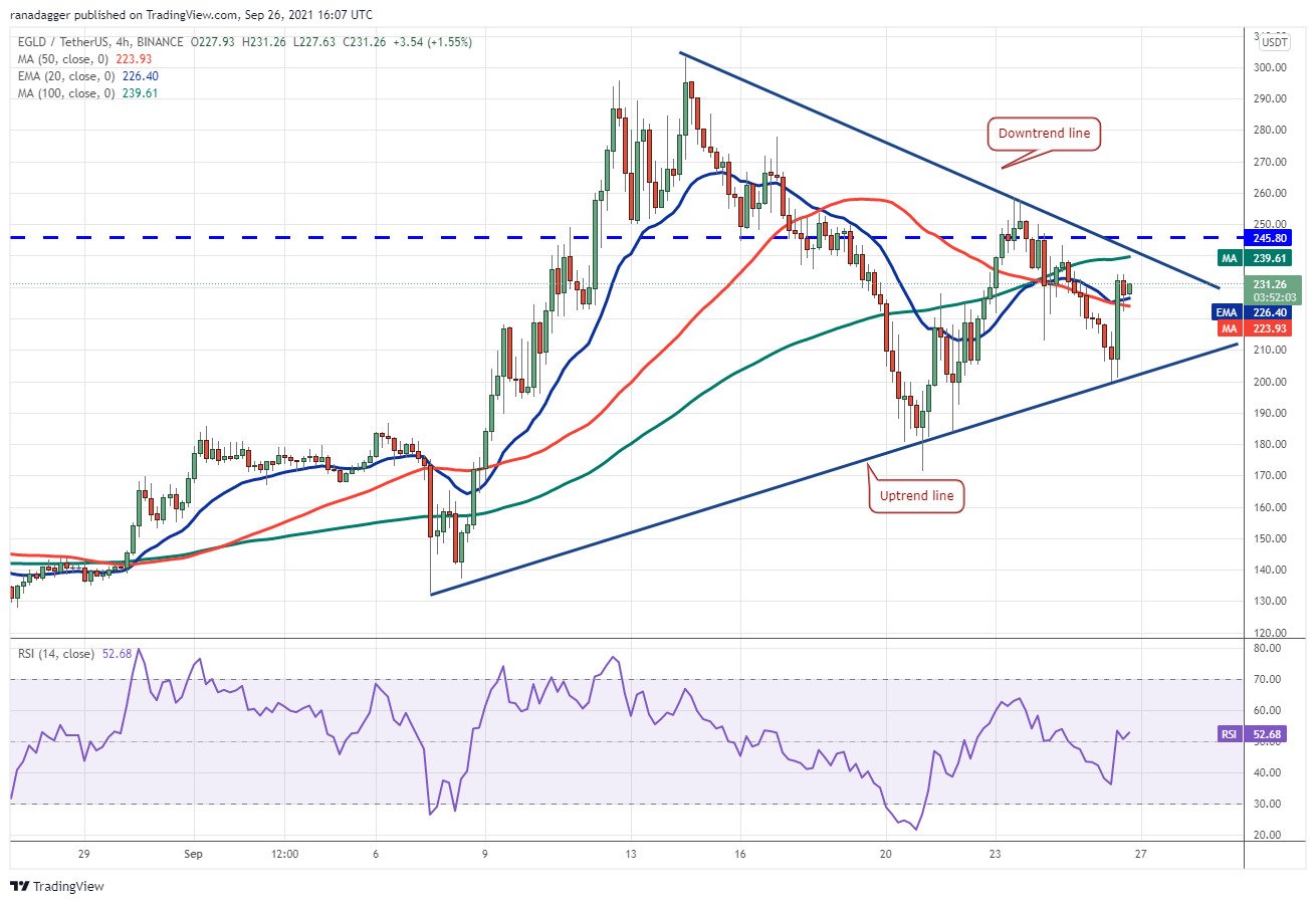 EGLD 50 günlük hareketli ortalamadan (181$) sıçradı ancak genel direnç olan 245.80 doları aşamadı. Bu durum boğaların düşüşlerde satın alırken ayıların rallide satış yaptığını gösteriyor.