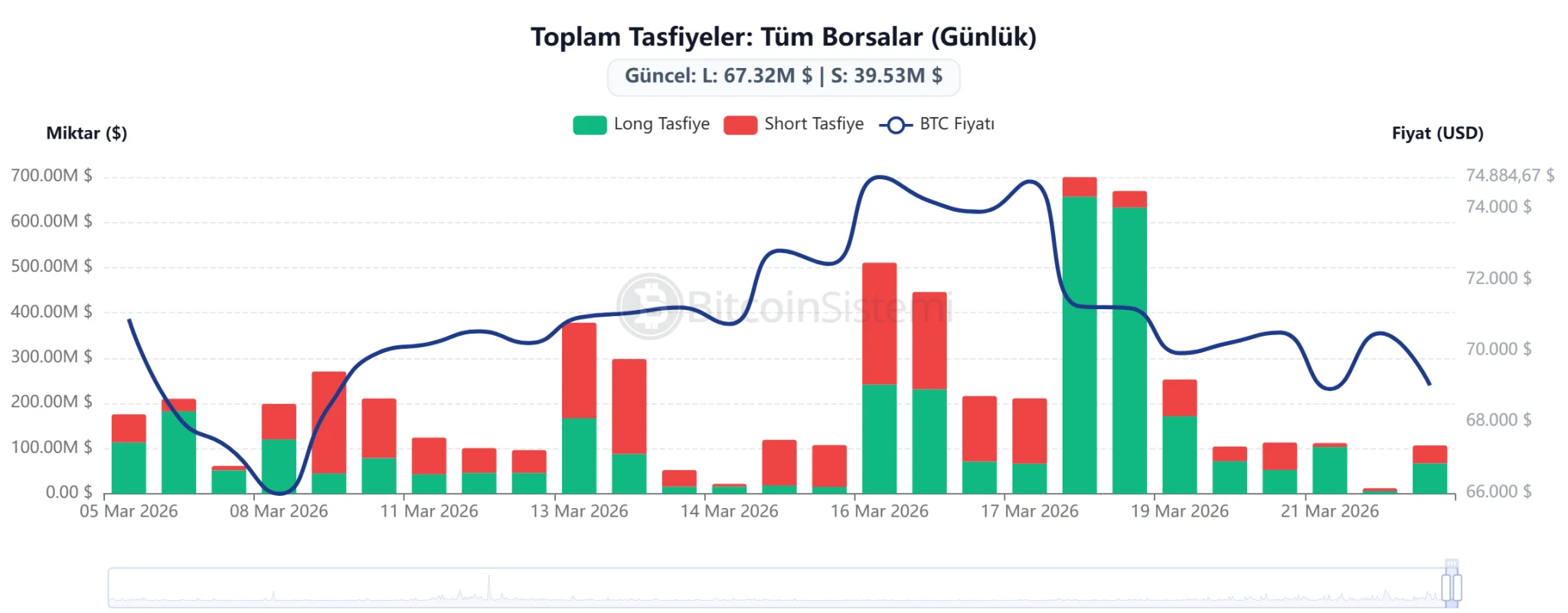 Vadeli işlem piyasalarında da dikkat çekici tasfiyeler yaşandı. Son 24 saat içinde toplam likidasyon miktarı yaklaşık 216 milyon dolara ulaşırken, bunun 170,5 milyon dolarlık kısmını long pozisyonlar oluşturdu. Short pozisyon tasfiyeleri ise 46,2 milyon dolar seviyesinde kaldı.