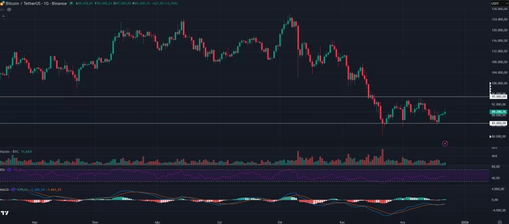 Son zamanlarda adeta 85.000 – 95.000 dolar arasına sıkışan BTC’de yönün belli olması için bu iki seviye çok önemli. Özellikle 85.000 dolar altına kırılım düşüşleri daha da derinleştirebilir. Aynı şekilde 95.000 üstü yükselişler de 100.000 doların önünü açabilir.