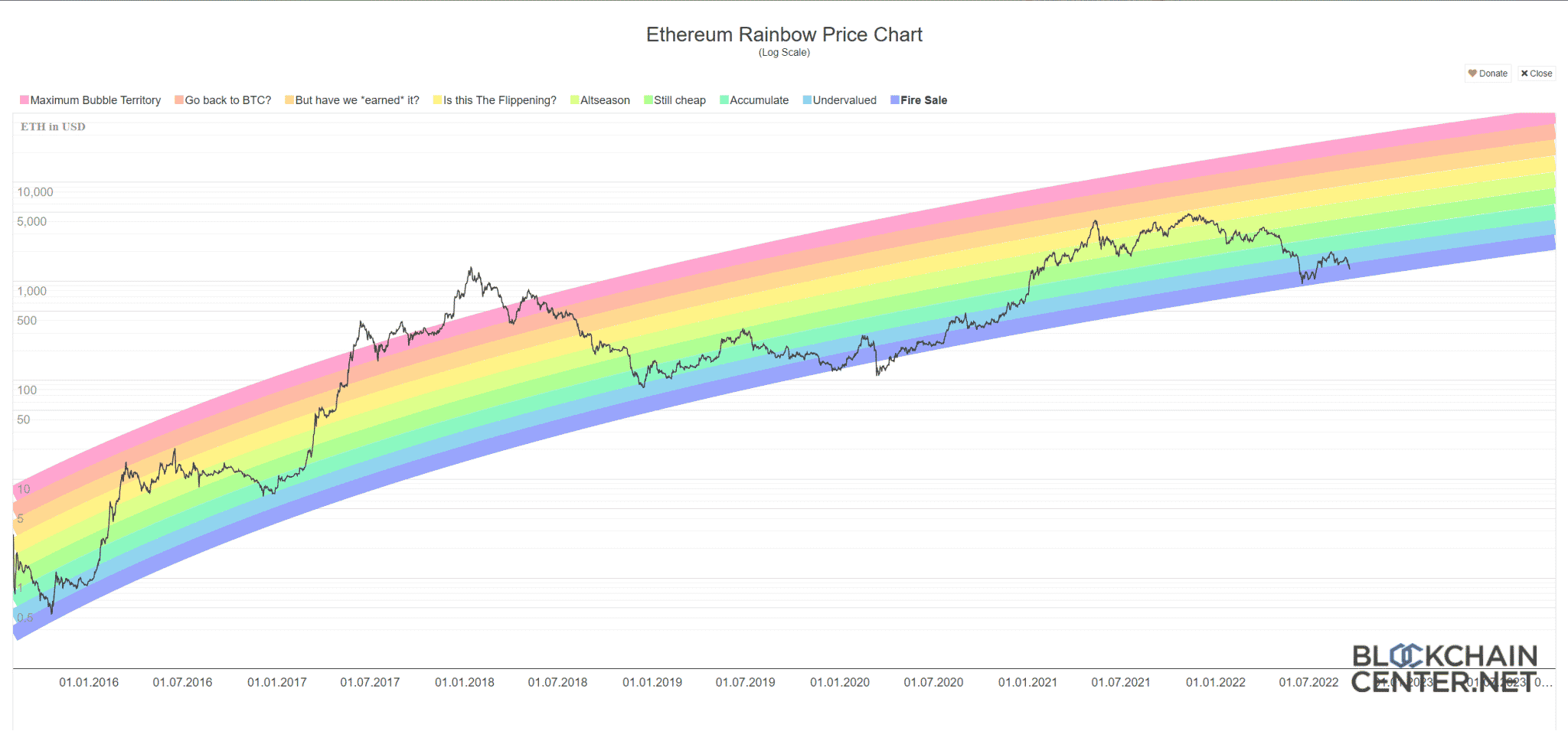 Bitcoin ve Ethereum için “gökkuşağı fiyat grafiğinin” son durumu şu şekilde: