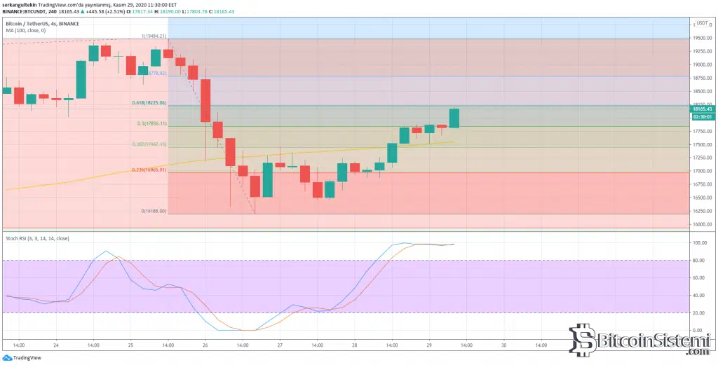 18.225$ direncinden önceki yazımızda bahsetmiştik. 18190$ seviyesine kadar çıkan BTC şuan 18100$ seviyelerinden işlem görüyor.