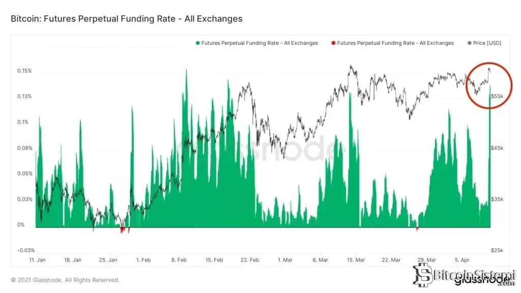 Bu veri Bitcoin fiyatında hemen bir geri çekilme olacağı anlamına gelmiyor. Ancak grafik incelendiğinde yüksek fonlama maliyetinin fiyat hareketlerini etkilediği ve %0.13 seviyesine ulaşan fonlama maliyetinin sürdürülebilir bir yükselişi desteklemediği görülüyor.