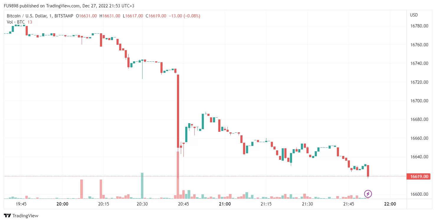 Avrupa ve ABD’deki Noel tatili dolayısıyla son derece durgun olan Bitcoin (BTC), ani bir düşüş ile ufak çaplı bir dump yaşadı.