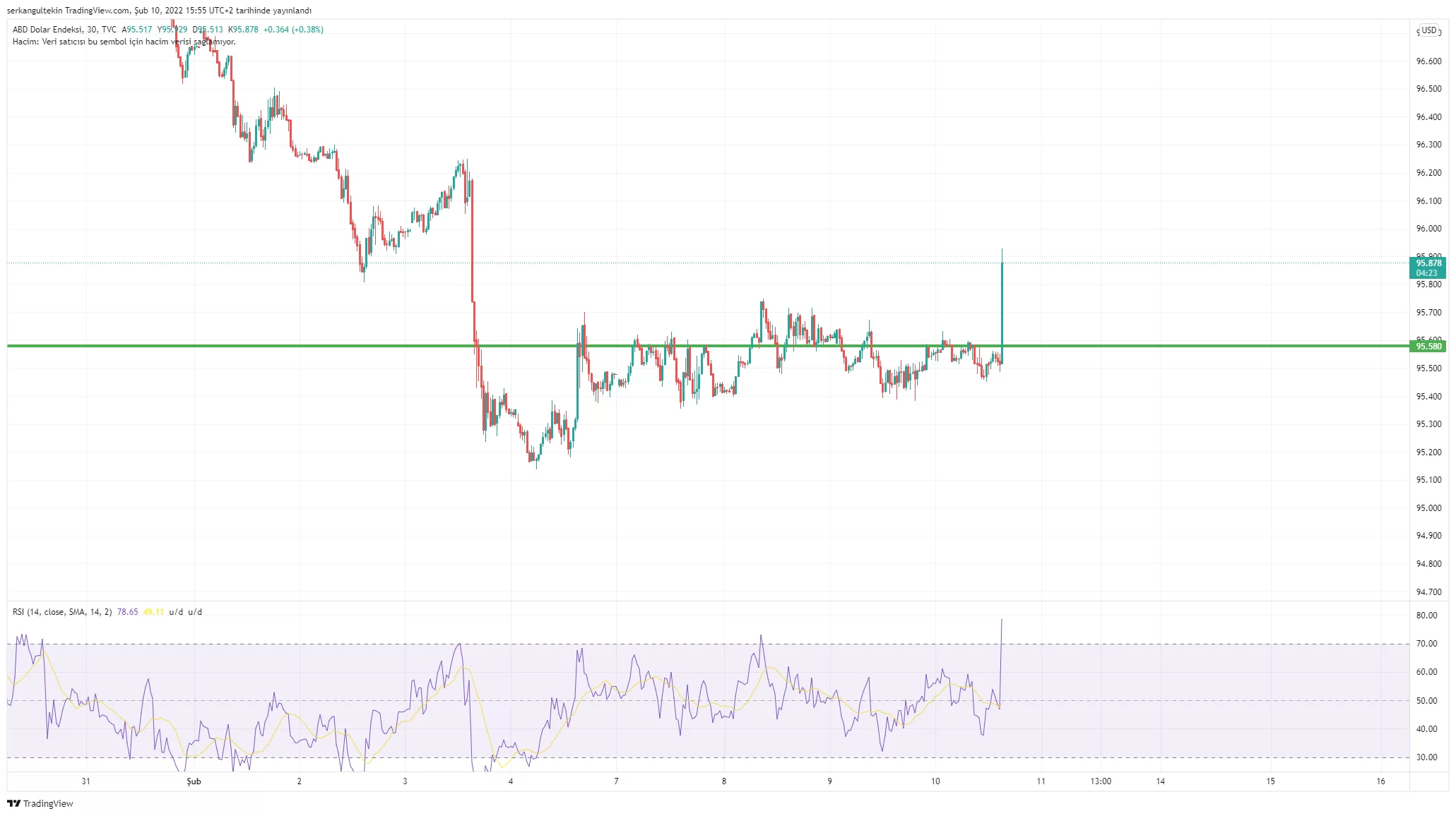 Enflasyon verisi sonrası doların gücü artarken, DXY yeniden 96 seviyelerine yaklaştı.