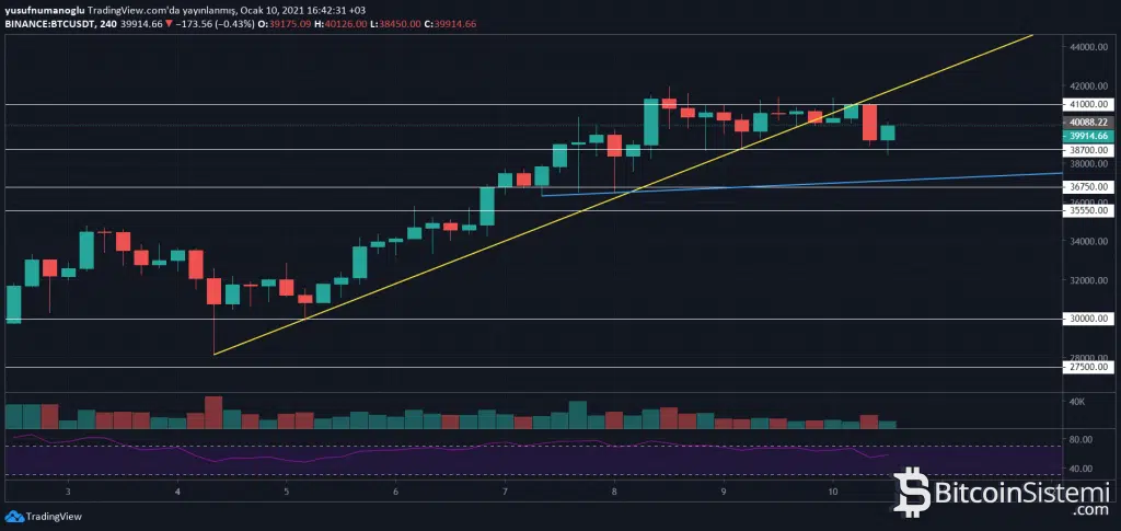 2 gün boyunca 40.000 doların üzerinde kalan ancak burada çok fazla tutunamayan BTC, volatil bir şekilde hareket etmeye devam ediyor. Temel analiz anlamında kurumsal yatırımcının Bitcoin’e olan ilgili hala devam ederken bir yandan madencilerin satışları arttırması fiyatı düşüş yönlü olarak etkiliyor.