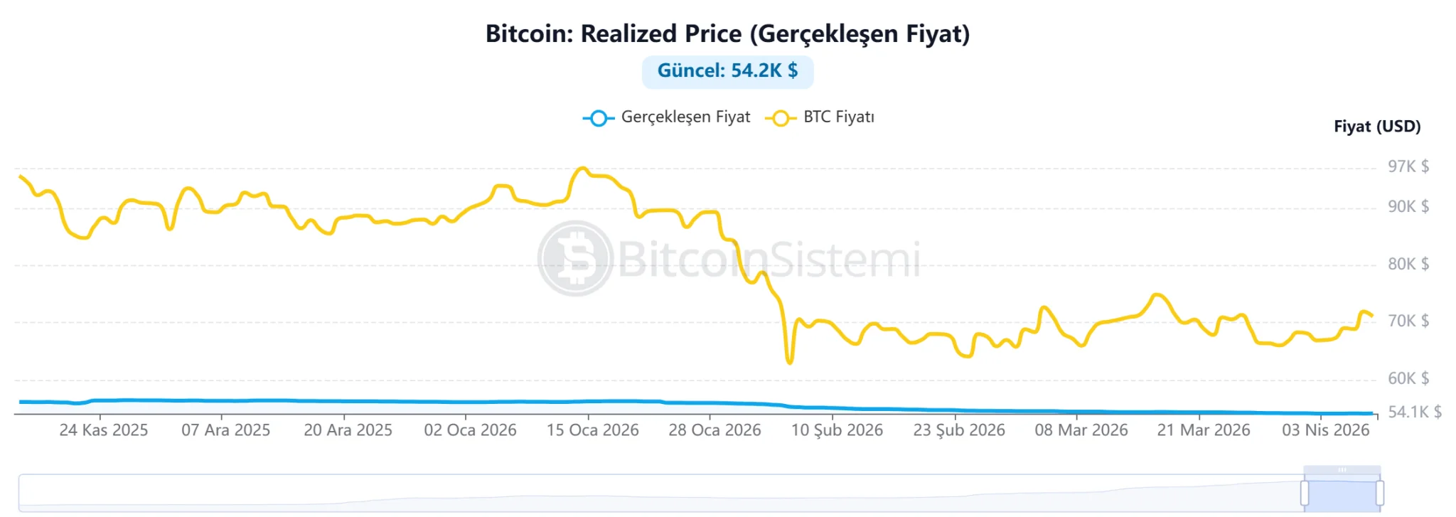 On-chain tarafında dikkat çeken bir diğer önemli metrik ise “gerçekleşen fiyat” oldu. Bitcoin için bu seviye 54.200 dolar civarında bulunurken, mevcut fiyatın bu seviyenin oldukça üzerinde olması piyasanın genelinin kârda olduğunu gösteriyor. Bu durum, yükseliş trendlerinde söz konusu seviyenin güçlü bir destek bölgesi olarak çalışabileceğine işaret ediyor. Geçmiş döngülerde fiyatın bu seviyeye yaklaşması, satış baskısının zayıfladığı ve alıcıların devreye girdiği noktalar olarak öne çıkmıştı.
