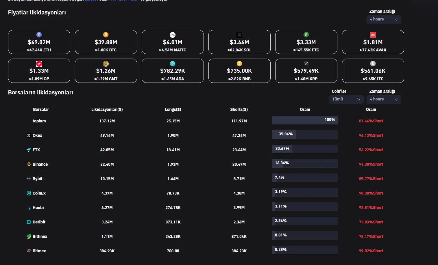 En çok tasfiye 69 milyon dolarla Bitcoin’de yaşanırken, onu 40 milyon dolarla Ethereum takip etti. En yüksek likidasyon oranında üçüncü sırada MATIC bulunuyor.