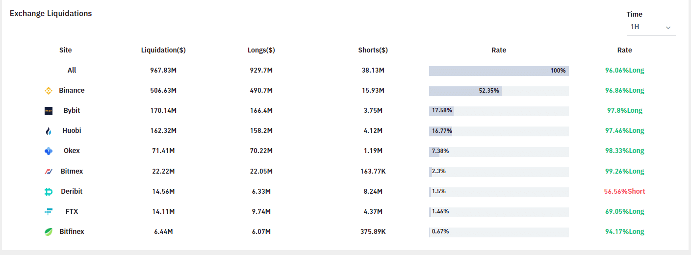 Bu düşüşte kazanan yine vadeli işlem borsaları oldu. Kısa süre içerisinde son zamanlarda görülmemiş oranda likidasyon yaşandı. ByBt verilerine göre son 1 saatte kripto para yatırımcılarının yaklaşık 1 milyar doları buhar oldu.