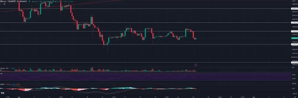 Bitcoin, gün içi en düşük seviyeden bu yana birkaç yüz dolar toparlanmasına rağmen, kripto para birimi hala 27.000 doların altında mücadele ediyor.