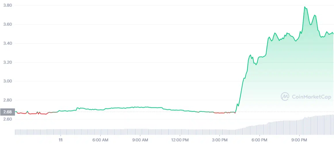 Şirketi altcoini, Blackrock tarafından bahsedilmesinin ardından %30’dan fazla değer kazandı ve bu yazının yazıldığı anlarda 3.50 dolardan işlem görüyor.
