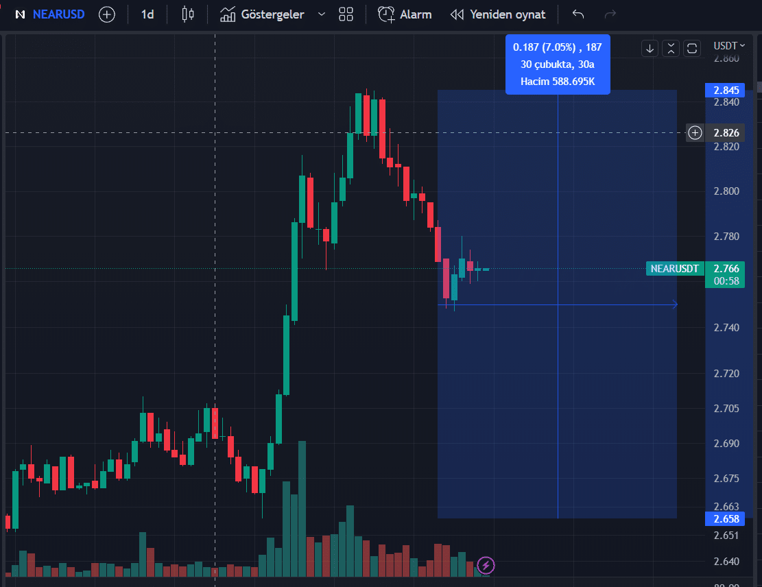 Bu paylaşımın ardından Near kısa sürede %7’lik bir yükseliş yaşayıp geri çekildiğini izledik.