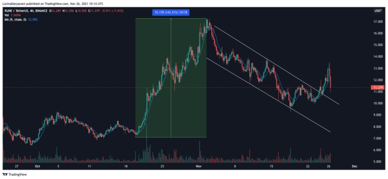 23 Kasım’da yükseliş trendini tersine çeviren RUNE, hemen ertesi gün başarılı bir kırılma yakalamayı başardı ve bugün erken saatlerde 13.5 dolar bandını ihlal etmeyi sürdürdü.