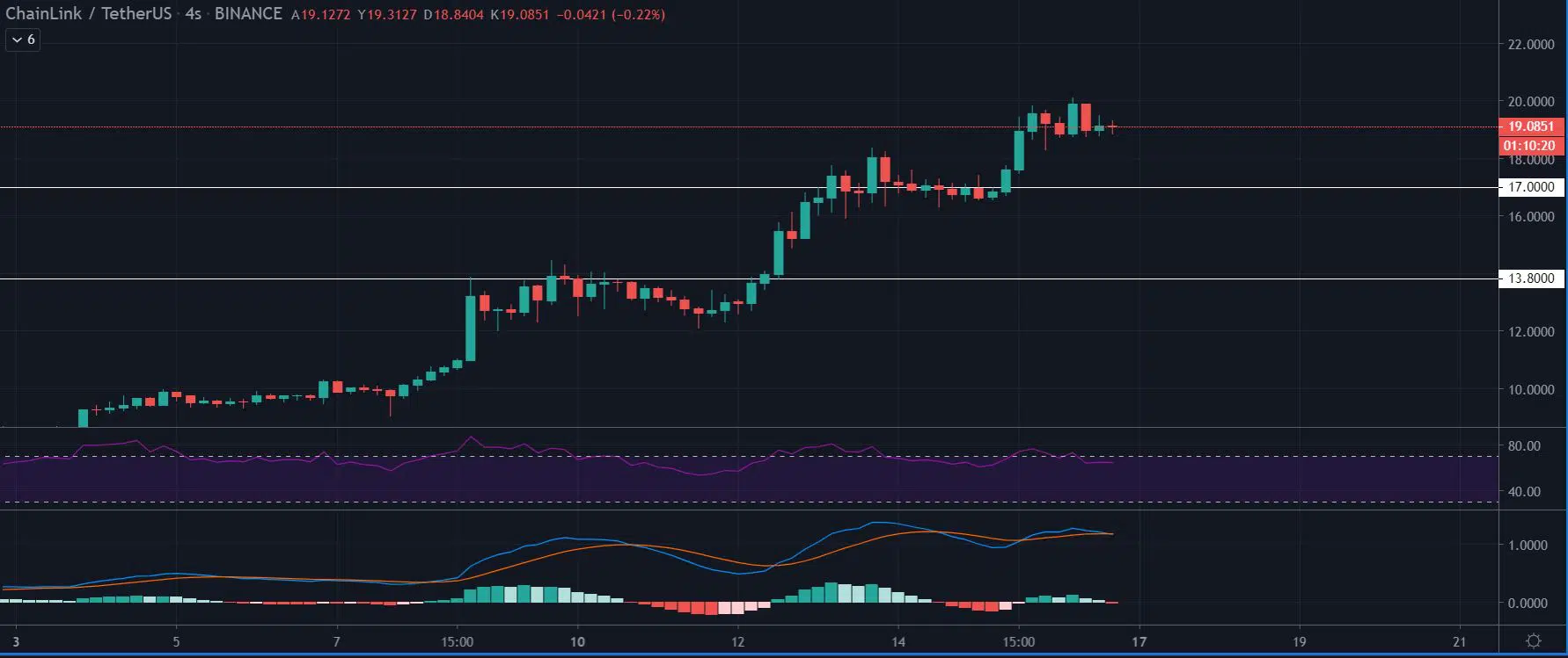 1 Temmuz 2020’den bugüne kadar yaklaşık %420 oranında değer kazanan Chainlink, 20 dolarlık sınırı zorlamaya devam ediyor.