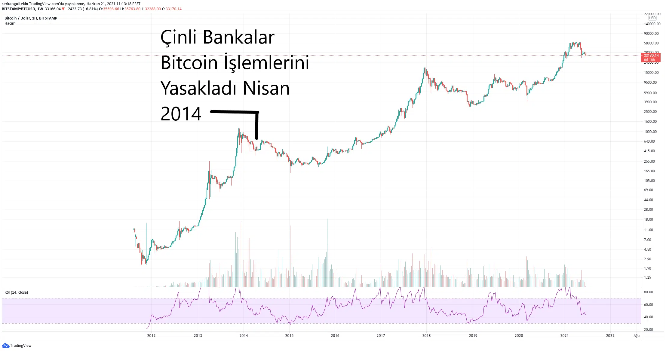 Görüleceği üzere Çinli bankalar aynı hamleyi 2014 yılında da gerçekleştirmişti. O sıralar Bitcoin 400-500$ bandında işlem görmekteydi. Görüleceği üzere bu tarz yasak haberleri kısa vadede dalgalanmalara neden olsa da Bitcoin’in uzun vadeli yol haritasında bir değişime neden olmuyor.