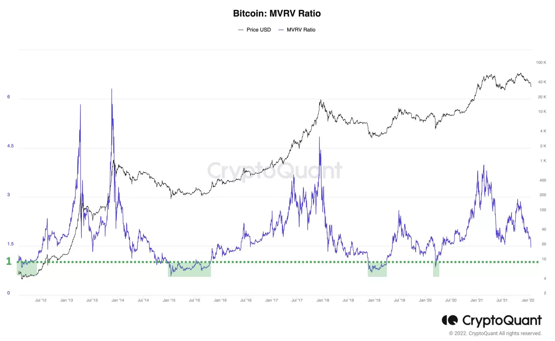 Tarihsel olarak döngüsel dip MVRV 1’in altına indiğinde geliyor.”