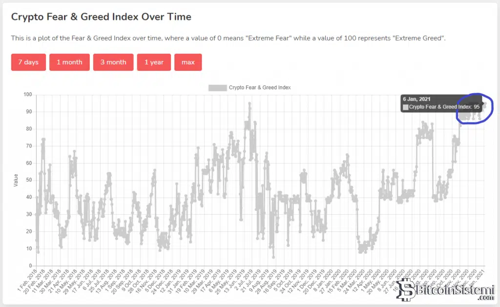 Ayrıca temel analiz tarafında CryptoQuant verilerine göre ise, yatırımcılar kararlarında belirsizlik yaşıyor. Bu belirsizlik fiyatın yakın zamanda bir düzeltme yapabileceğini gösteriyor. Ayrıca korku ve açgözlülük endeksinin de oldukça yüksek seviyelerde olduğu düşünüldüğünde, fiyatın düzeltme yapması bekleniyor.