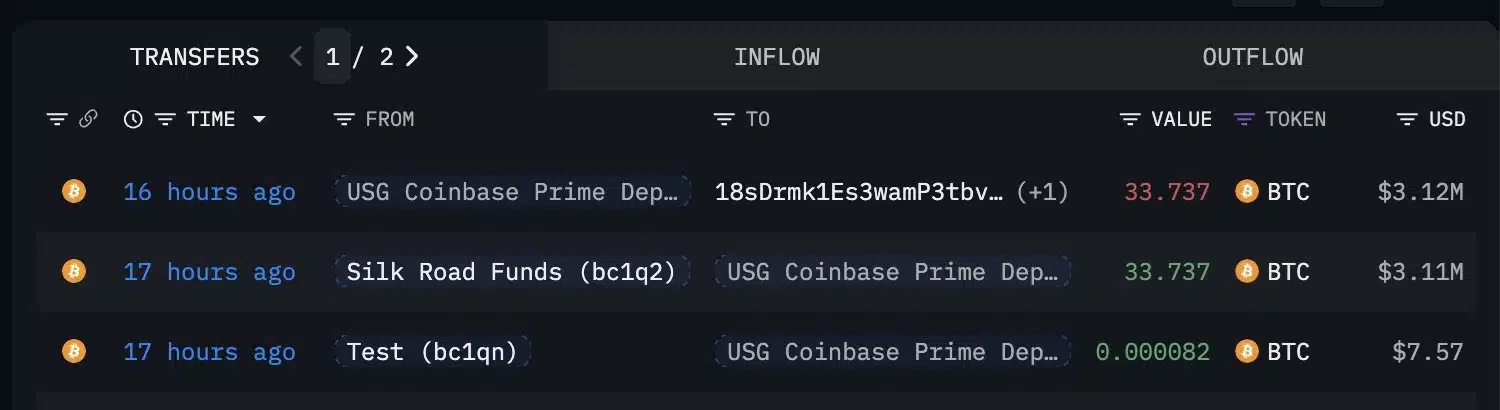 Zincir içi veriler, bu varlıkların daha önce ABD hükümetiyle ilişkilendirilen adreslerden Coinbase Prime platformuna taşındığını gösteriyor.