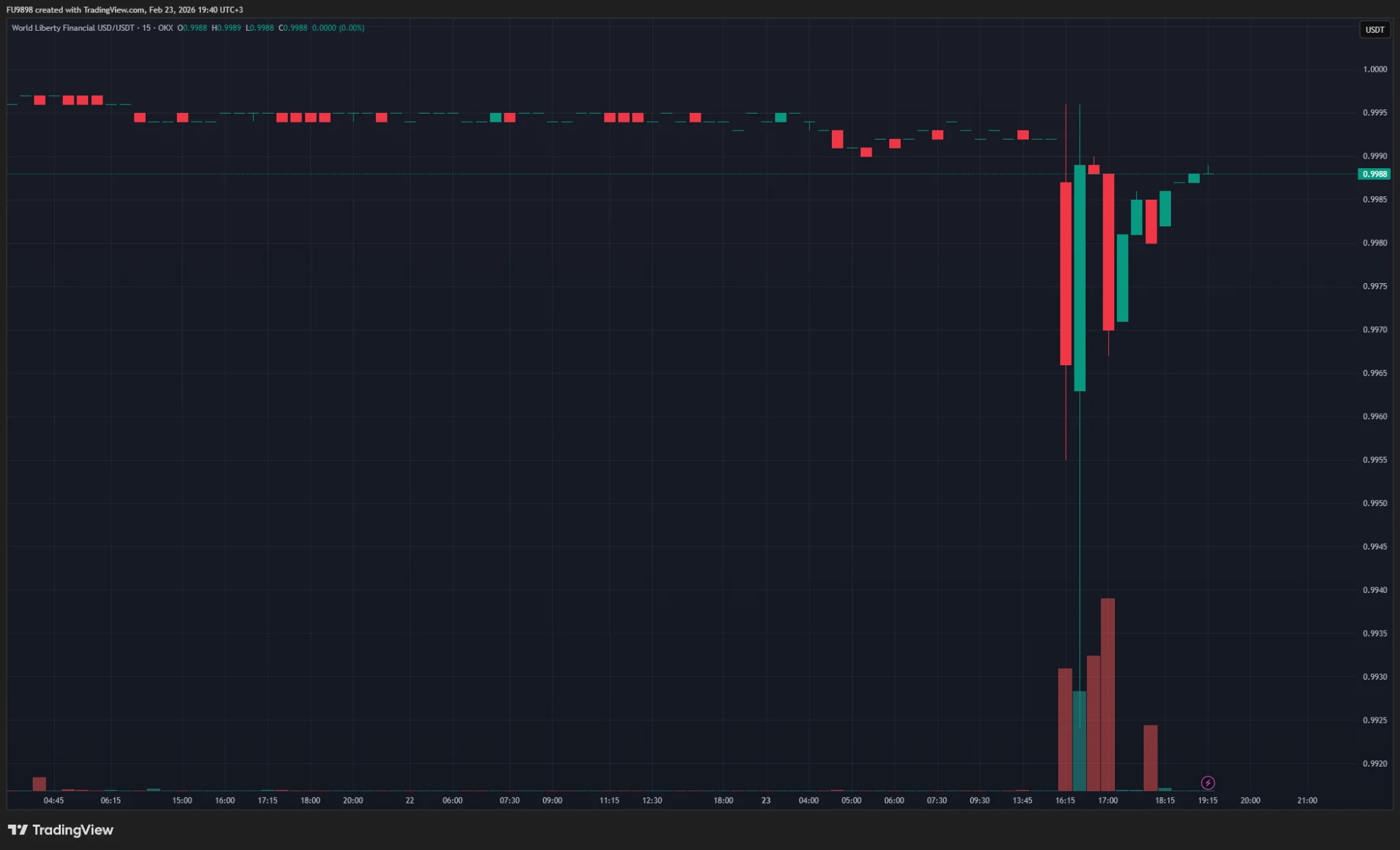 USD1 fiyatında kısa süreliğine 1 dolara olan sabitin kaybolduğunu gösteren grafik.