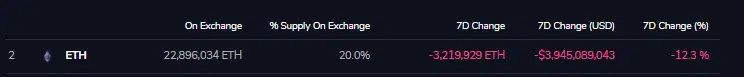 Aşağıdaki tabloda borsalara (tüm hacimli borsalar dahil) giren ve çıkan Ethereum hareketliliğine görüyoruz. Son bir haftada yaklaşık 3.2 milyon Ethereum’un borsalardan çıkış yaptığını gözlemliyoruz. Bu Ethereum’ların bugünkü değeri yaklaşık 4 milyar dolar. Borsalardaki Ethereum arzının bu denli hızlı azalması bize Ethereum’un daha gidecek çok yolu olduğunun sinyalini veriyor.